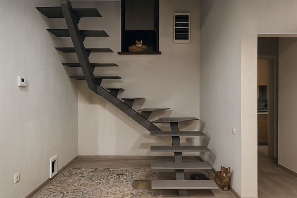 Лестницы на тетивах от Техносервис+ – это классическое решение, проверенное временем. Ступени крепятся с обеих сторон к прочным несущим балкам (тетивам), что делает конструкцию максимально надёжной и устойчивой. Такой тип лестницы отличается строгой геометрией и универсальностью – он одинаково хорошо смотрится как в частном доме, так и в современном офисном интерьере.