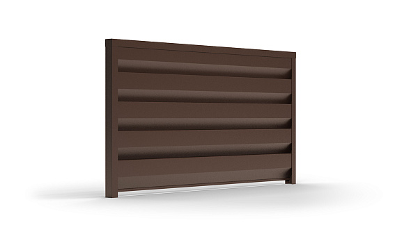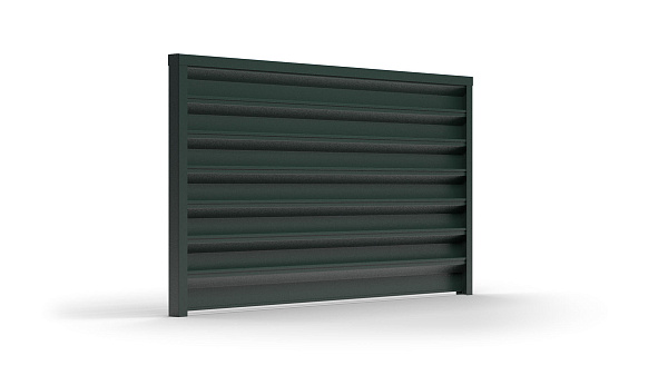 Забор-жалюзи Виола — это запатентованное решение «ЮнисТрейд», которое объединяет стильный дизайн и надёжность. Конструкция обеспечивает приватность без затемнения участка, а вертикальные усиливающие элементы придают дополнительную прочность и долговечность.